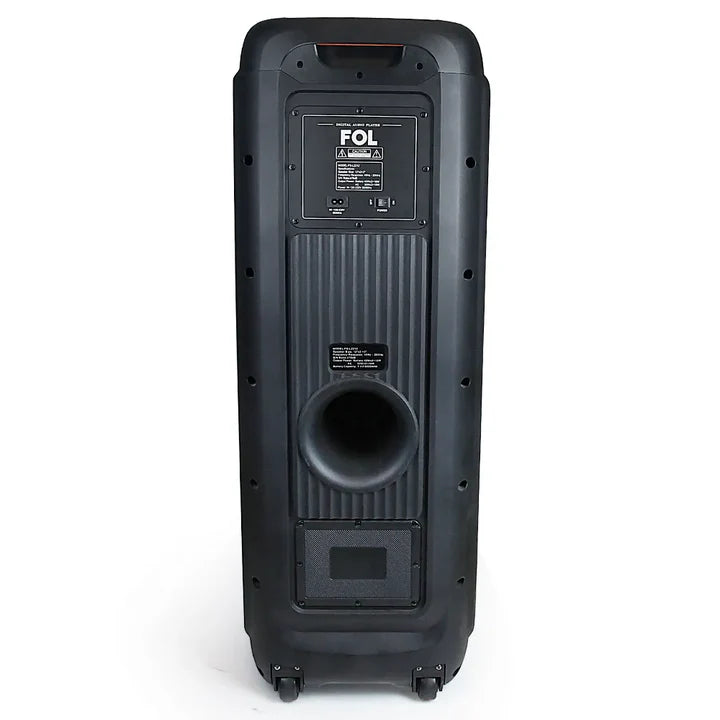 Experience ultimate audio freedom with the FS-L2212 speaker. Enjoy versatile connectivity options including Bluetooth streaming, USB and TF card playback, AUX input, True Wireless Stereo syncing, and even a dedicated guitar input. Control your music effortlessly with the included remote. Powered by a robust 7.4V 8000mAh battery, it delivers hours of non-stop sound. The powerful 50W x 2 + 10W output combined with dual 12-inch main speakers and 2-inch tweeters provides clear, vibrant audio for any occasion. Take your party anywhere with big sound and long-lasting energy.