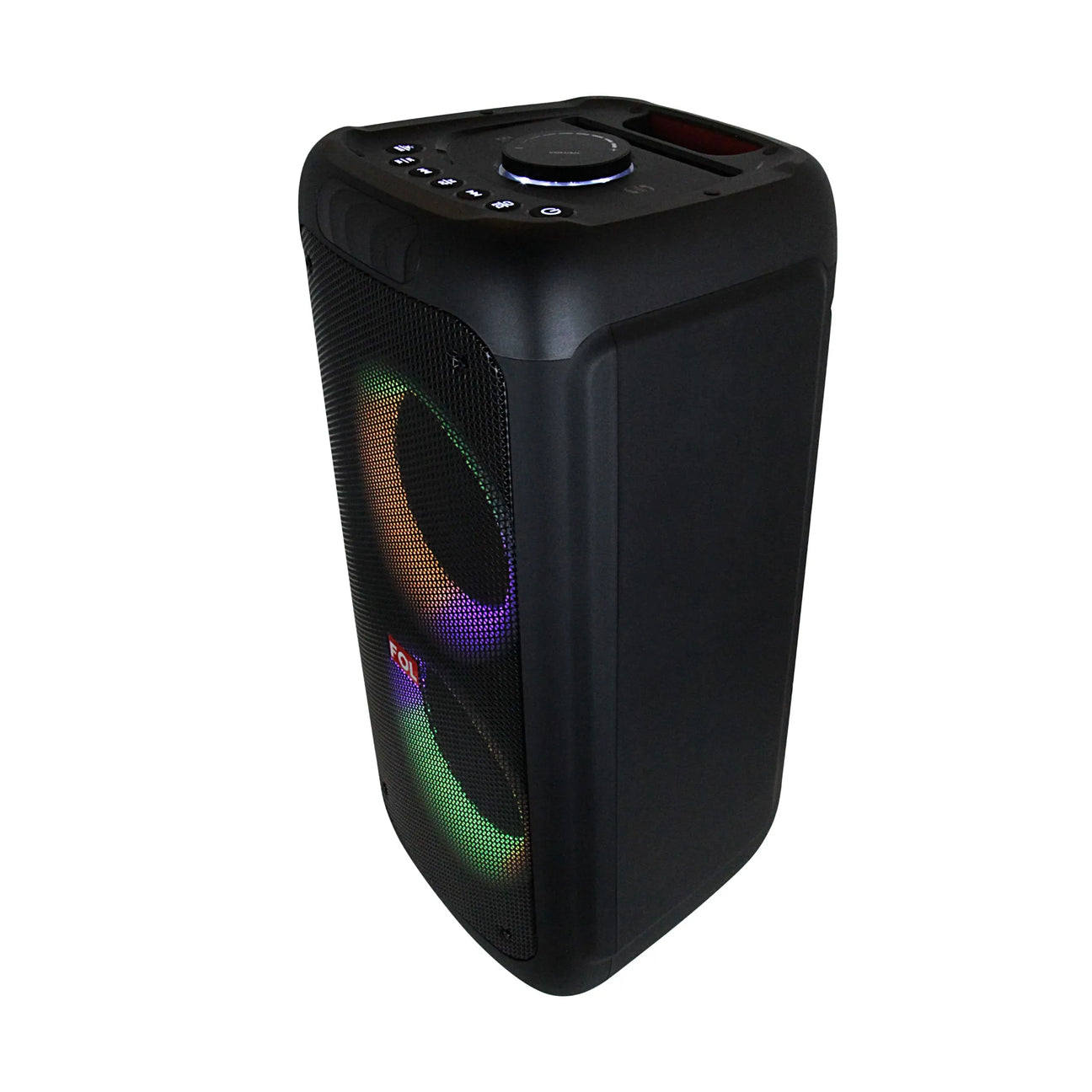 The FS-L299 rechargeable portable speaker delivers crisp, powerful sound with dual 30W output and an 8-inch speaker, perfect for any setting. Equipped with Bluetooth for wireless music streaming, plus 3.5mm auxiliary, USB, and microSD ports for versatile playback, it also tunes into FM radio. The built-in RGB light and illuminated base add ambiance, while the LCD screen on top shows essential info. With remote control convenience and up to 3 hours of battery life on a full charge, this speaker combines style and functionality for music on the move.